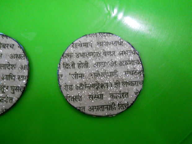 Estos círculos de periódico en los círculos de la caja hecha de pegamento.
