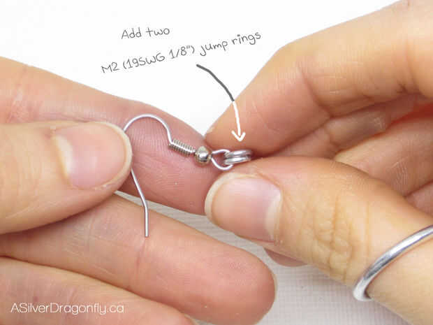 Añadir a dos de la M2 (19SWG 1/8") saltar anillos al alambre de oído y cerrarlas.