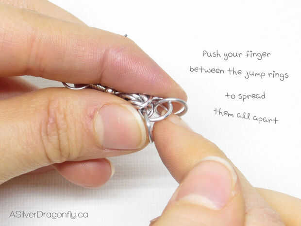 Presione su dedo entre ambos conjuntos de anillos grandes. Que desea difundir las anillas aparte para que acaben con una pequeña cesta.