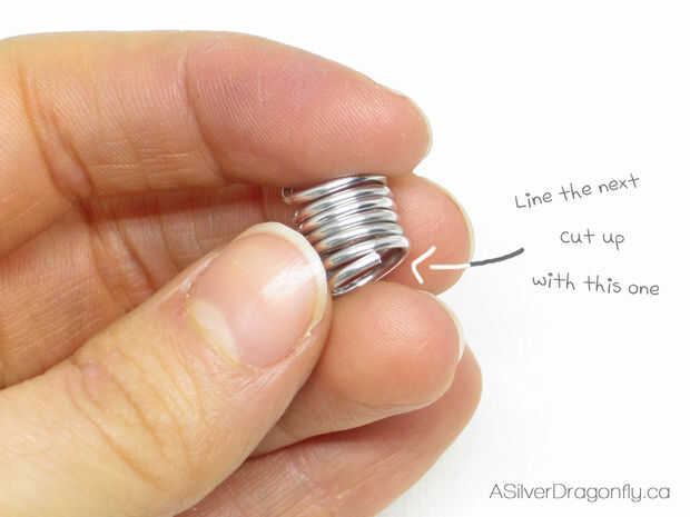 Cortar los anillos de salto, tome una de las bobinas y utilizar la anterior corte hecho como guía para donde debe ser su siguiente corte.