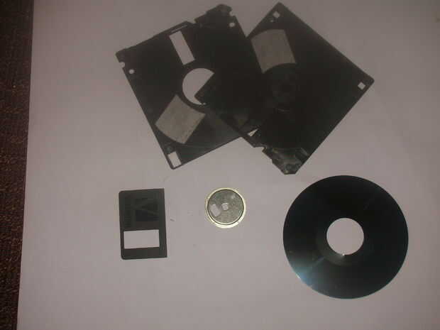 Una vez abierto, tomar el centro de metal fuera de ese disco negro brillante que almacena todos sus datos de dulce vieja escuela. Repita con el otro disco, luego deseche las piezas adicionales o guardarlas para otro proyecto.