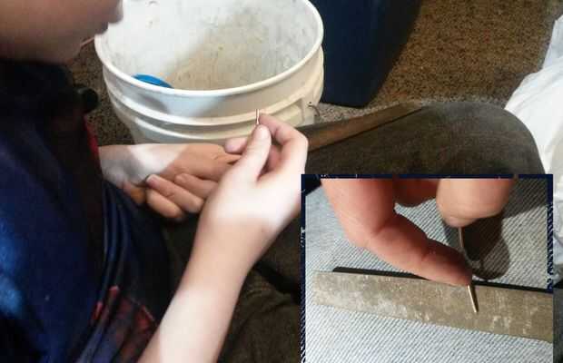 apoyar el extremo del alambre, frote el extremo en el archivo, gire a la vuelta de rub rub. Mi hijo que Kevin está en la foto que muestra cómo configurarlo.