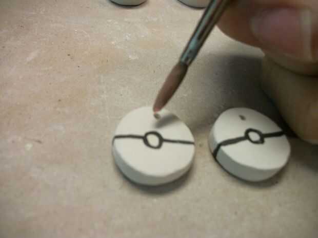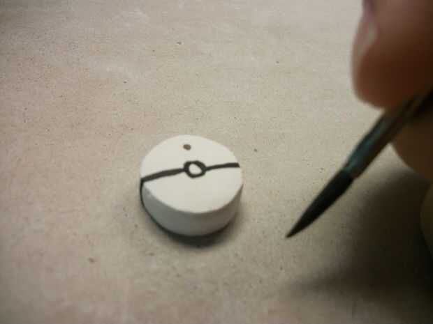 Es bastante fácil de pintar. Sólo usar bajo el vidriado y un pincel y hacer el diseño de la pokéball en el pendiente.