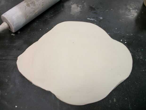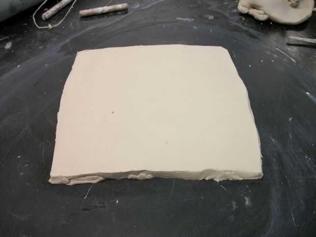Ahora que la arcilla se rueda hacia fuera, puede empezar a cortar las formas de las pendientes de él.