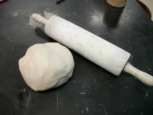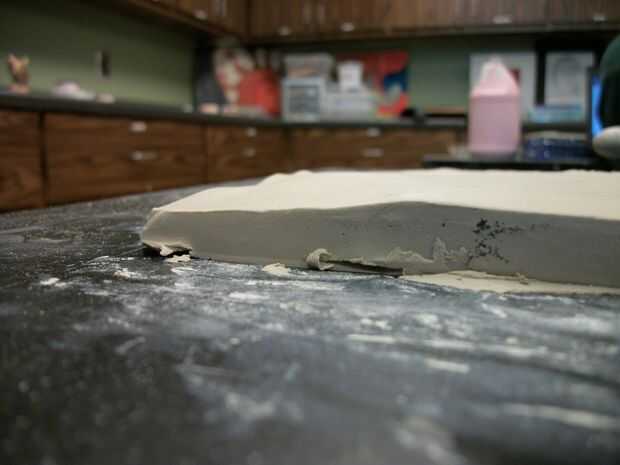 En primer lugar, cubra el área donde a aplanar la arcilla con envoltura de plástico transparente. Esto hará mucho más fácil quitar el barro de la mesa una vez que se ruede hacia fuera. Por desgracia, no tuve ninguna envoltura de plástico que tengo, así que tuve que utilizar el cortador de alambre para cortar la arcilla de la mesa y luego limpie la arcilla. No era divertido, confía en mí.