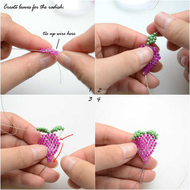 3. tejer el cable restante a través de cuentas en el borde para que sean reunidos en el grano de semilla partida como iguales.