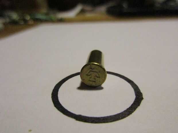 aquí es una manera de reutilizar los cartuchos de gama que no puede soportar para dejar en el tiro de pistola, después de su práctica gama mensual!el.357 Sig (cartucho de la pistola) hacer un agujero de estilo "Tapón" más excelente punch.  El ta