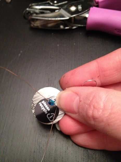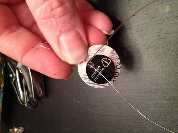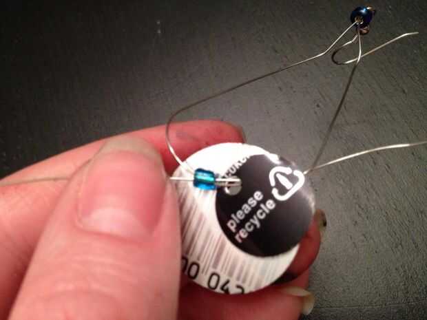 • Pase el otro cable hacia abajo a través de la cuenta, a través a la parte posterior de los círculos.