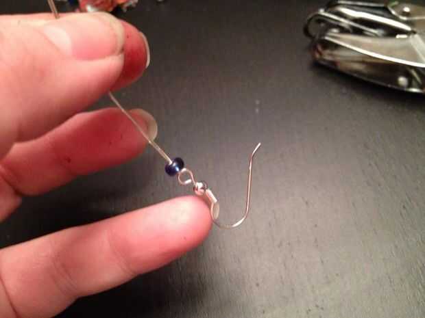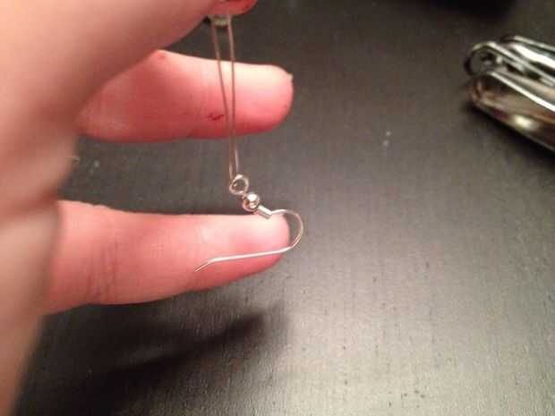 • Añadir una gota en ambos cables, presionando firmemente para el gancho del pendiente.