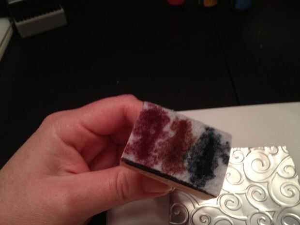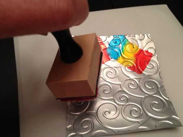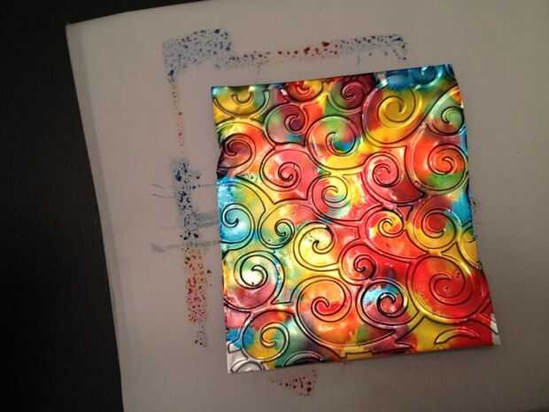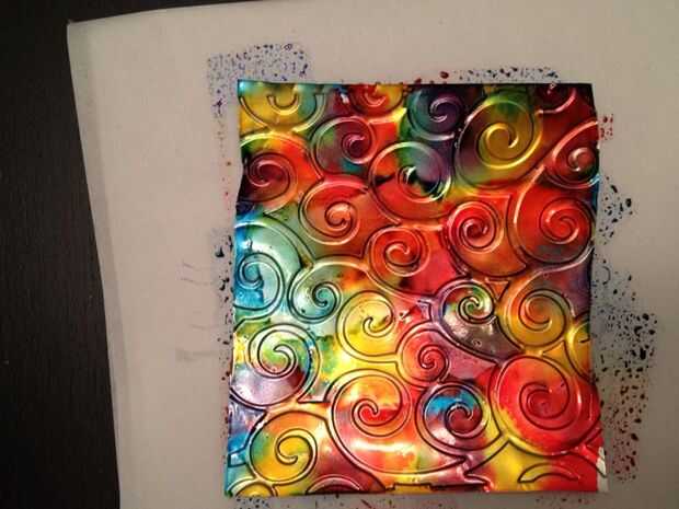 Estampar el color sobre el metal, superpuestas como vas.  Mantener sellado hasta que estés contento con la mezcla de colores.
