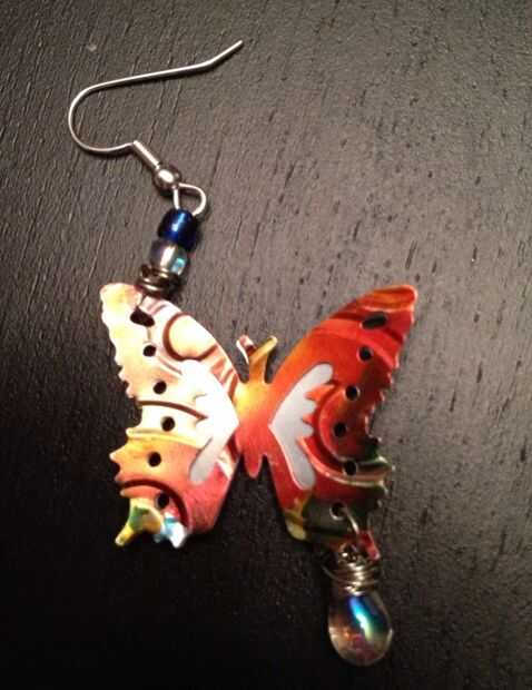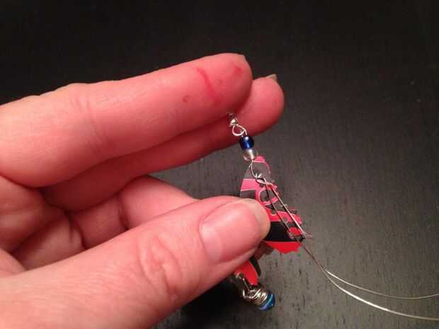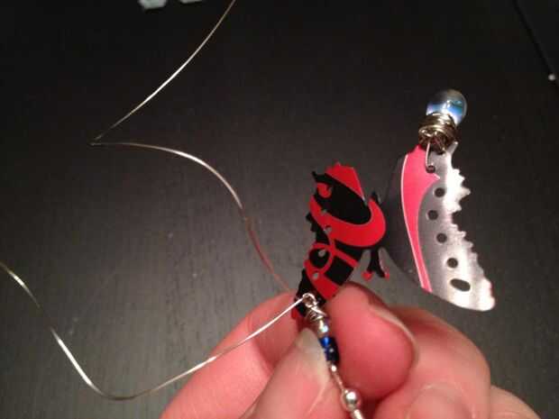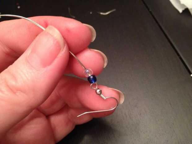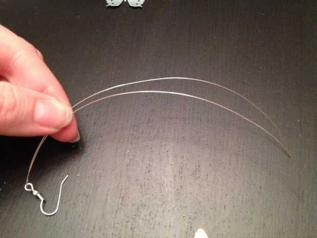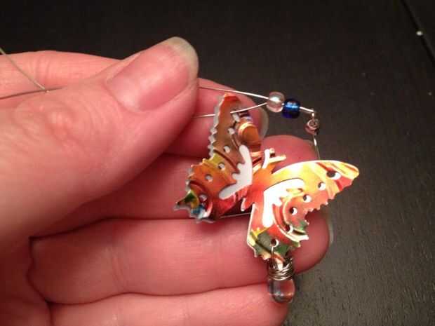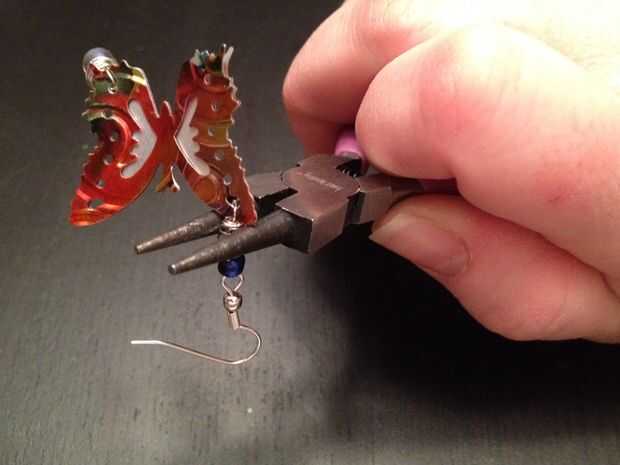 • Repita este paso hasta que el alambre firmemente sostiene las cuentas entre el gancho de pendiente y la mariposa.
