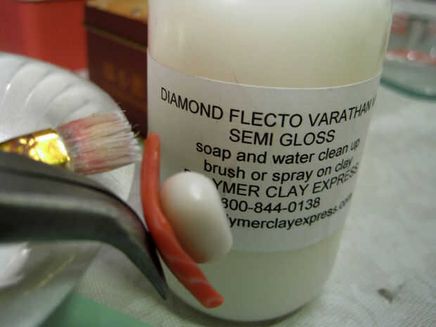 Superior de su lindo sushi con acondicionador semi-gloss (anteriormente Flecto, ahora Rustoleum). Una o dos capas, aplicadas con un pincel limpio suave, deben hacerlo.