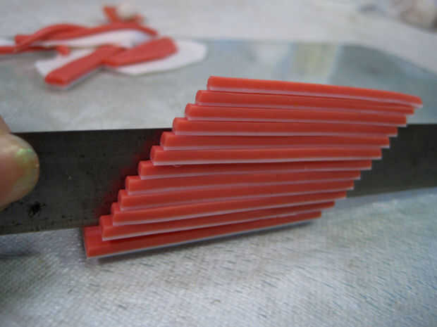 Seguir apilando rebanadas hasta que eres de barro o ha acumulado unas cuantas pulgadas. La inclinación de todo esto hará más fácil cortar más tarde.
