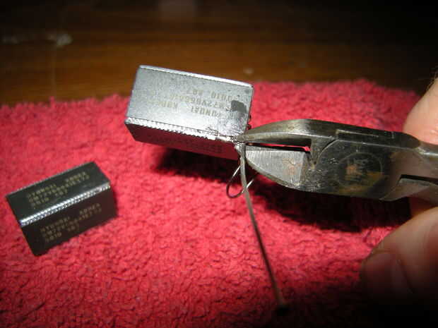 4. usando diques corte el perno de cabeza en el empalme de la soldadura pero guardar el exceso para el otro pendiente.