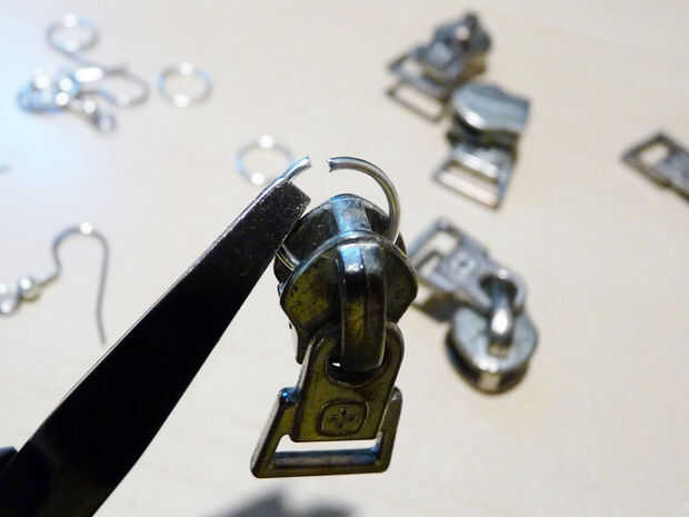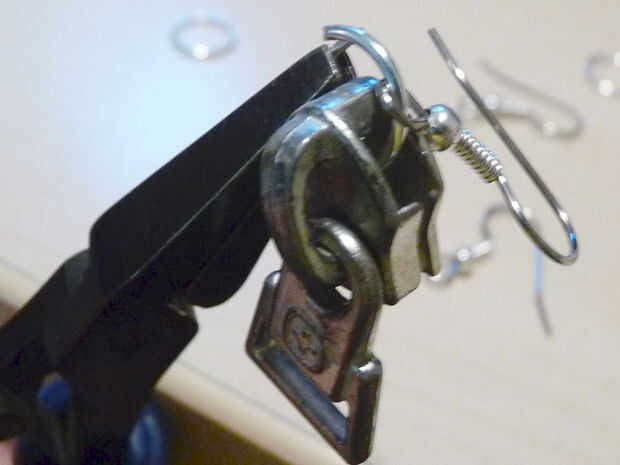 Mientras que el anillo está todavía abierto, añadir un alambre del oído.