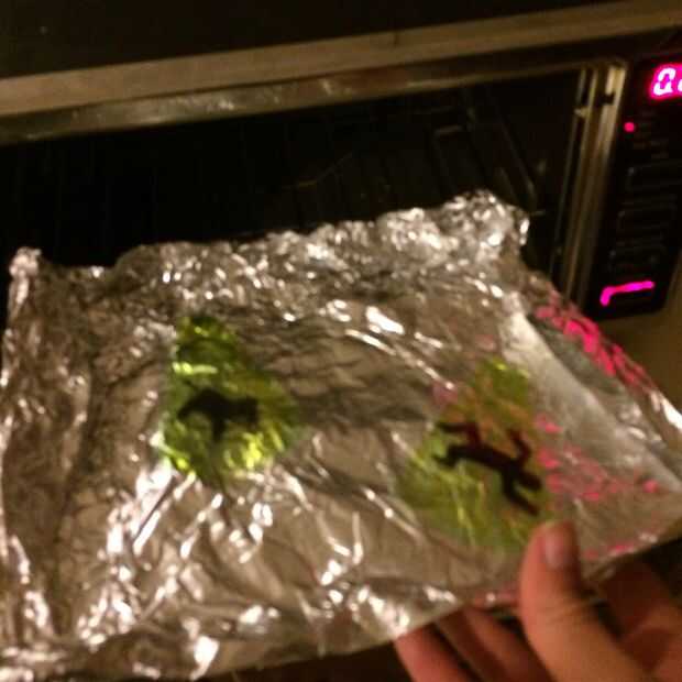 Siga las instrucciones para hornear tus Shrinky dinks.