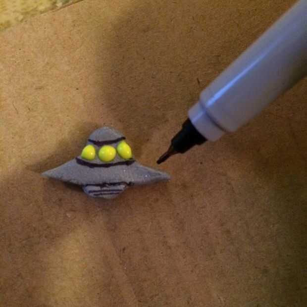 Usa tu sharpie extra fino para dibujar detalles sobre el OVNI. Las fotos representan lo que decidí aprovechar mis Ovnis pero no dude en llamar cualquier líneas/de las formas que desee!