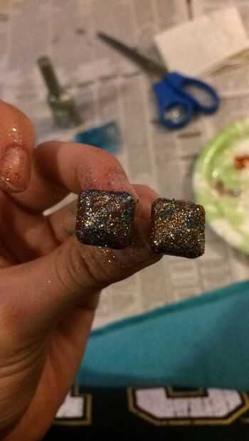 Después de haber pintado y aplica brillo a sus pendientes, deje que se seque. Esto no debería tomar mucho tiempo porque se utiliza esmalte de uñas.