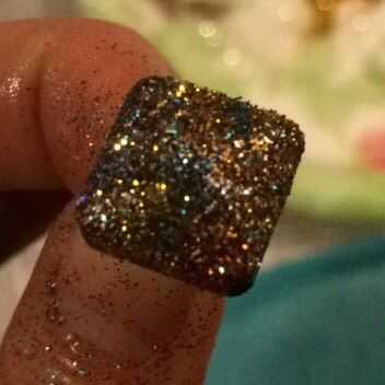 grano 1) pintura con esmalte de uñas (mantenga el post para hacerlo más fácil) luego inmediatamente 2) espolvorear brillo un poco de cada color en el pendiente. Recordar que el brillo sólo puede pegar donde existe esmalte húmedo. Que tenlo en cuenta cuando se asperja!