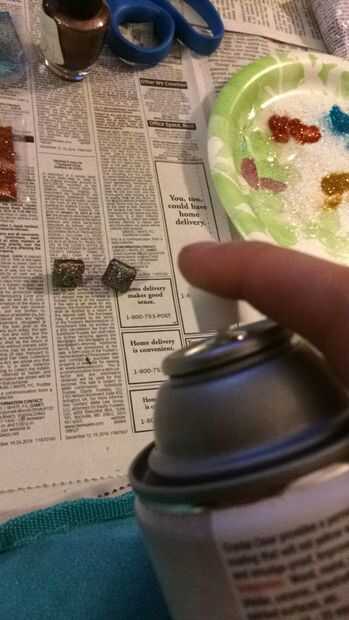 Rocíe una capa del spray acrílico en la parte de grano de sus pendientes.