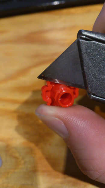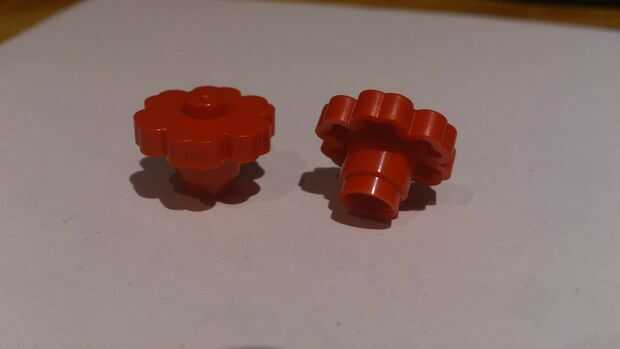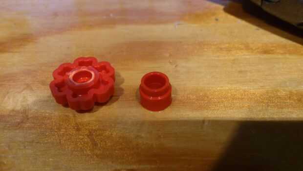 Tomar una de las piezas de Lego flor y cortar el tallo. Hice esta al ras con la parte inferior de las hojas.