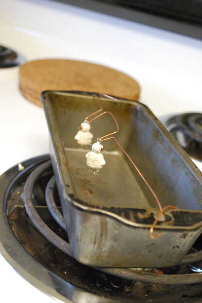 Hornear tus pendientes a 275F/130 ° C durante 13 minutos. La voluntad de arcilla todavía sensación flexible en este tiempo, la arcilla se endurecerá como se refresca. He quemado bastantes piezas pensando en que necesitan más tiempo después de notar que la arcilla era todavía un poco de sensación maleable. La regla es 15 minutos por 1/4"(6mm) de espesor.