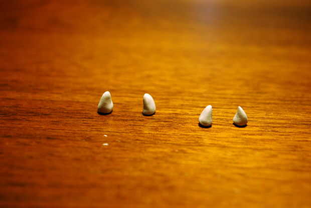Pellizcar el extremo de un brazo y presione el extremo a las puntas de los dedos, haciendo una forma de cono. Empuje suavemente la punta del cono sobre a un lado, crear un poco de una curva. Repito, hacer cuatro brazos pequeños.