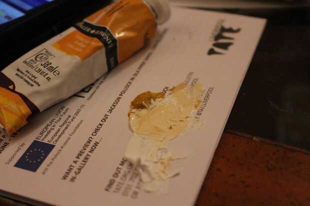 Luego mezclar pintura blanca y amarillo para que el color de la cara carnosa de la seta y esta había pintado en cada champiñón.