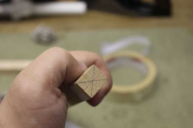 También encontré el centro de la madera. Es importante que incluso si su centro no está en la línea de corte que siguen usando la línea de corte como su centro, de lo contrario tendrá mitades setas desigual más tarde.