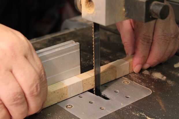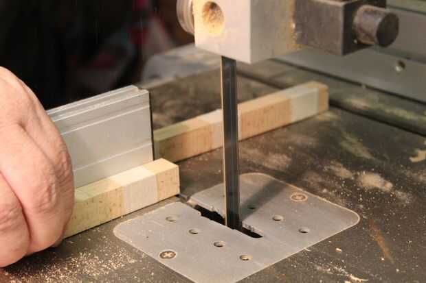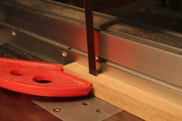 Para encontrar el centro para el corte de la Sierra de banda que hice un corte inicial donde pensé que el centro era y luego al revés la madera. Por suerte la línea correspondía y había encontrado la línea de centro primera vez. Si tuviera no habría ajustado mi valla a cortar entre los cortes iniciales.