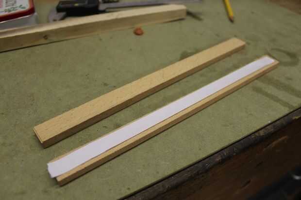 He usado doble cara pegajosa a la cinta a lo largo de esta línea de corte (si había planeado la madera hubiera grabado en las caras aplanadas).