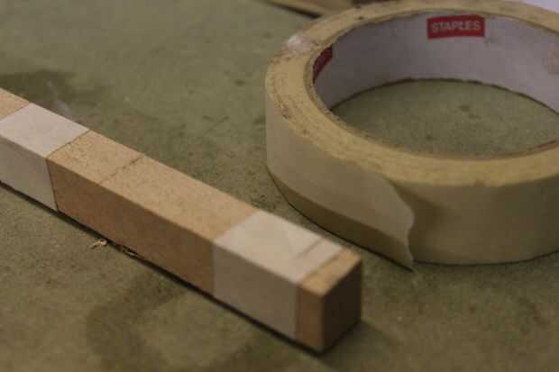 Entonces utilicé cinta adhesiva a lo largo de la longitud de esta madera para disminuir las posibilidades de la descontaminación de madera mientras que trabajo con ella en pasos posteriores.