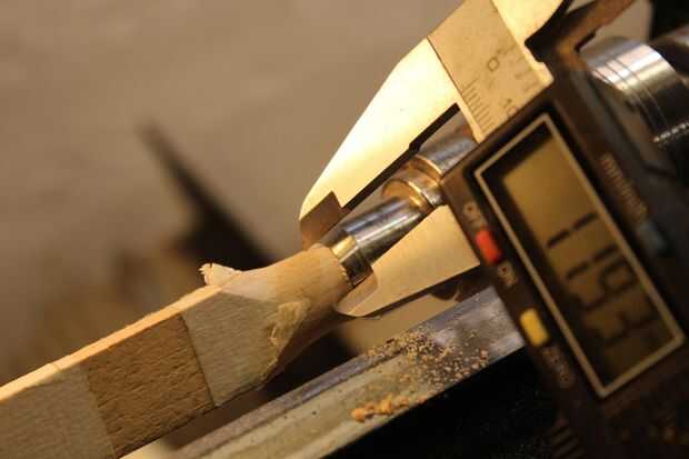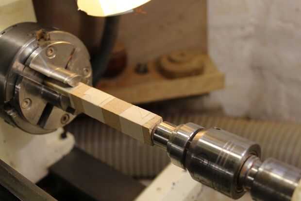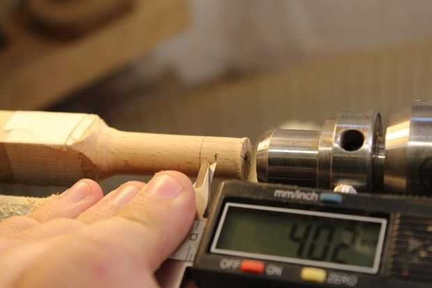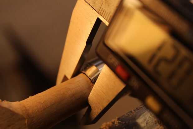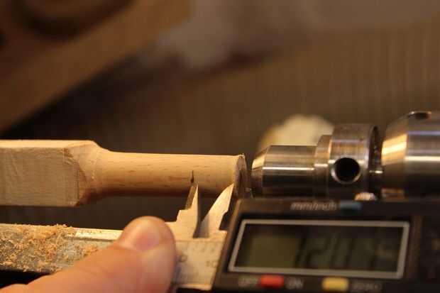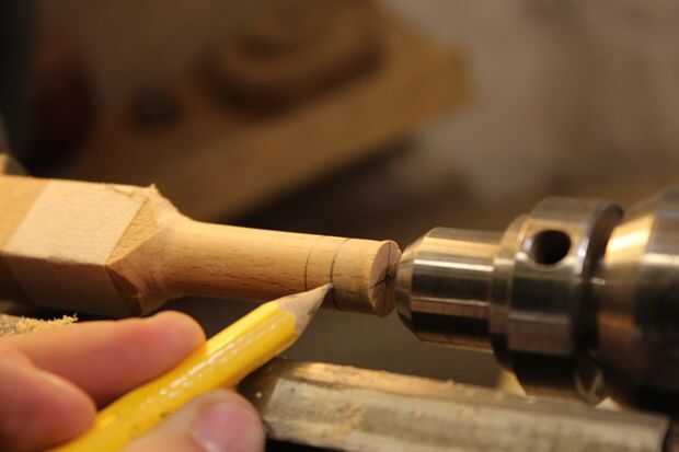Usé una gubia de huso para encender la madera alrededor de 12mm y mide 12mm desde el extremo, marcando con un lápiz y 4mm en desde ese punto.