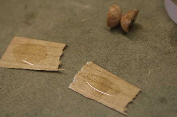 Una vez que los imanes fueron fijados en la madera pegué las setas a escarpes de chapa fina.
