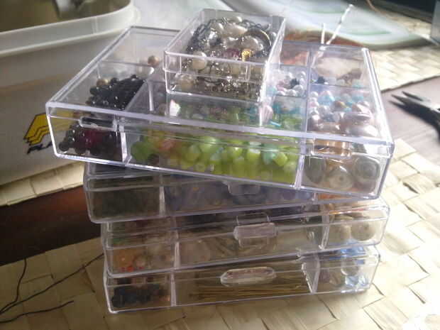 Tómese su tiempo para elegir las cuentas que desea trabajar para hacer ambos lados idénticos, ponen hacia fuera en la superficie de trabajo para comprobar si cada grano tiene su par en el otro lado.