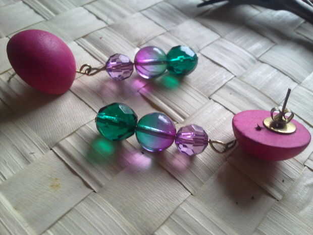 Inicie con sacarse tanto como usted tiene gusto del viejo par. Bajé el sistema del anillo loro doblando abierto un anillo ya allí. Entonces eligió granos para trabajar con, había decidido el diseño y terminó doblando el extremo de los pasadores y cortarlos.