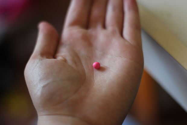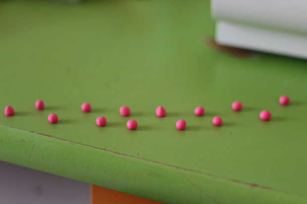 Cada pendiente necesidades 6 pétalos y una base así que empiezan por laminación de 14 bolitas de arcilla. Las bolas deben ser sólo unos milímetros de alto, pero usted puede hacer más grande si usted gustaría tener rosas grandes. Tomar 2 de las bolas y trabajo que se vean como un kiss de hershey. Estas serán las bases de sus pendientes.