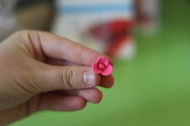 Para hacer los pétalos, simplemente aplanar todas las bolas excepto las que son en forma de kisses de hershey (cuadro 3). Tome uno de los "pétalos" y fíjelo a la base ligeramente presionando el y curvar alrededor de la base (Figura 4). Seguir este paso para los próximos cinco pétalos (imagen 1, 2, 5 y 6) y luego iniciar el proceso con el siguiente pendiente. El último paso es aplanar la parte inferior de la pendiente por lo que puede ser pegado en el poste de pendiente fácilmente.