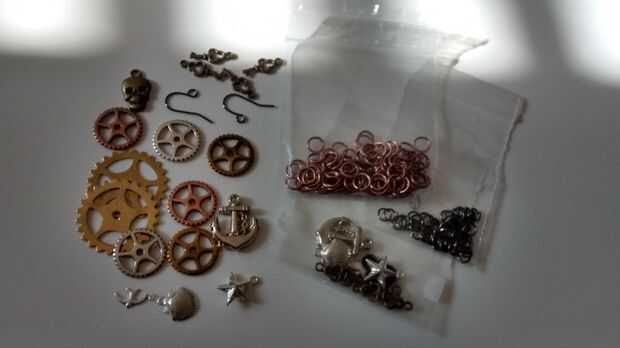 -Granos: elegí 8 teclas, 2 Calaveras, anclas, estrellas, golondrinas y cáscaras de la almeja. Otra vez más o menos, pero son un poco pesados (aunque no doloroso) - 2 ganchos de pendiente.