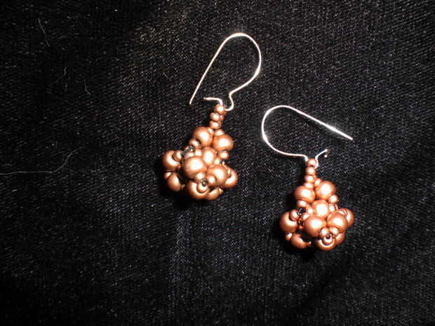 Este es un trabajo que ha hecho mi esposa. Tiene unos pendientes, de esos tipo perla. Pero con el tiempo empezo a perder el nacar, y se estropearon. Y decidio darles un cambio, y de paso experimentar un poco.Los materiales empleados son sencillos:-Un