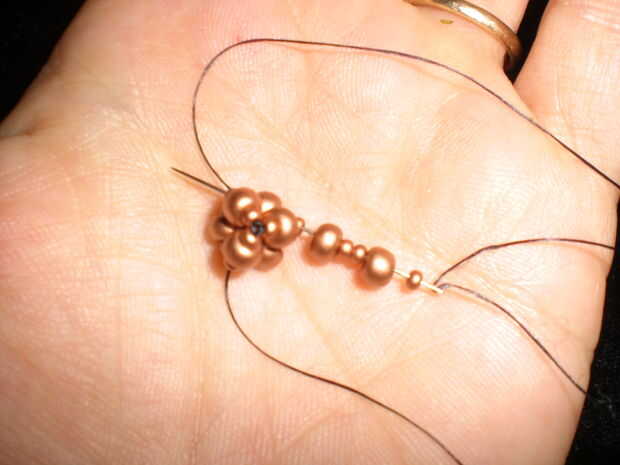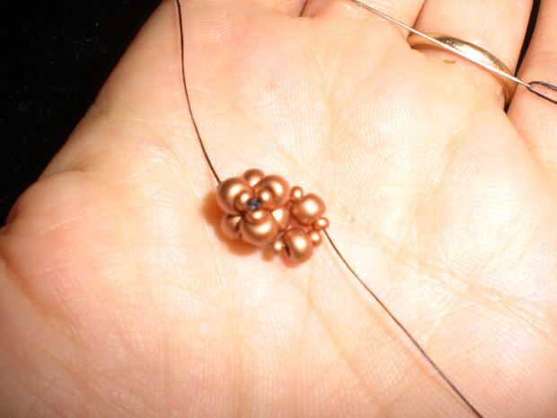 Pasar por el borde mismo del tetraedro que vino de. Tire con fuerza. Pasar la aguja por un borde del nuevo triángulo para que el subproceso de trabajo sale el punto.