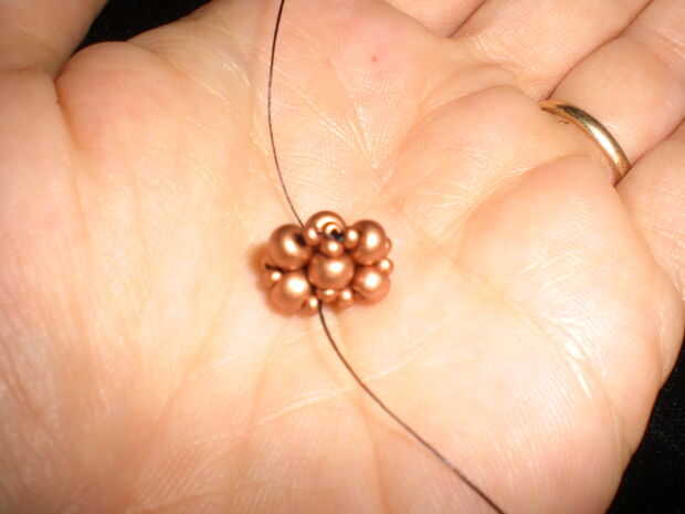 Terminar con el hilo de trabajo salir de una de las aristas del tetraedro original base.