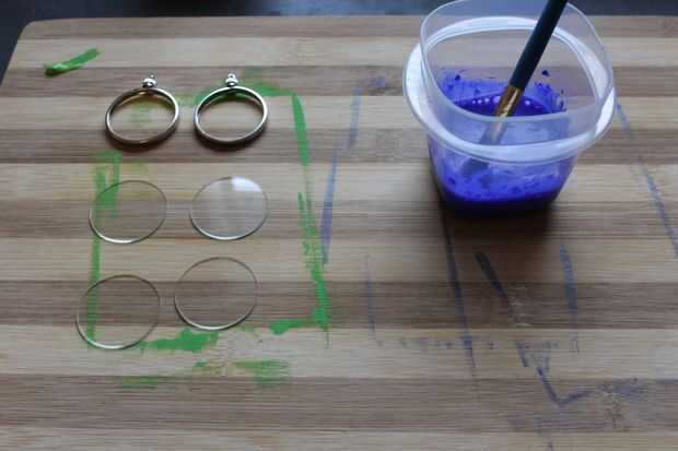 Empecé a probar con la pintura color a transparente que hice. Encontré tratando de cepillo en no funcionó tan bien, así que aplicó sobre el vidrio.