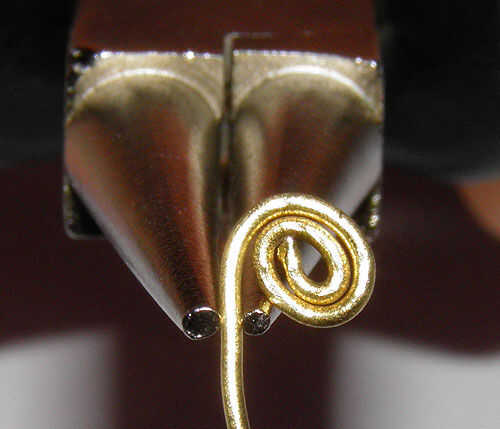 Para hacer un alfiler de cabeza con el espiral en el extremo, una torcedura debe hacerse para que el post de los granos se centrarán sobre la espiral.
