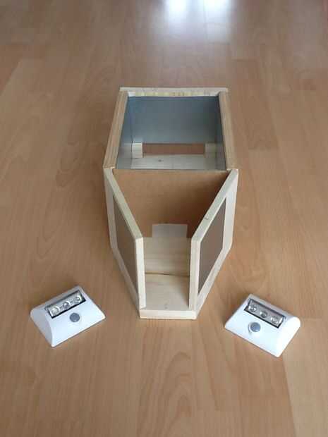 3) cortar la pared trasera y pegar en el extremo de las paredes laterales
