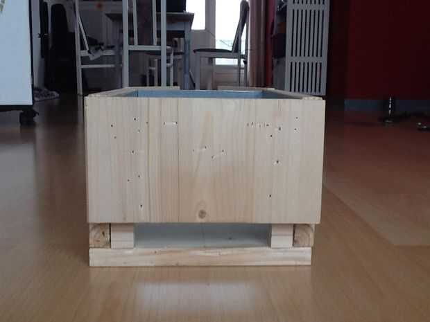 Ahora puede ver el camino donde el tubo y el alambre pasa por debajo de la caja de bonsai a través