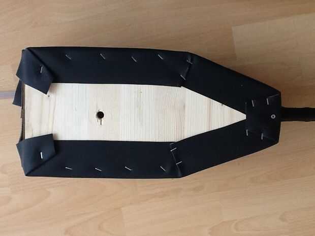 Si usted usa madera delgada como Procure usar clavos profundos. También puede decidir pegar algunas piezas. Tenga cuidado al pegar: Asegúrese que el pegamento puede ser utilizado con cuero y presione el cuero lo suficiente en su posición para que el pegamento puede desarrollar su poder.