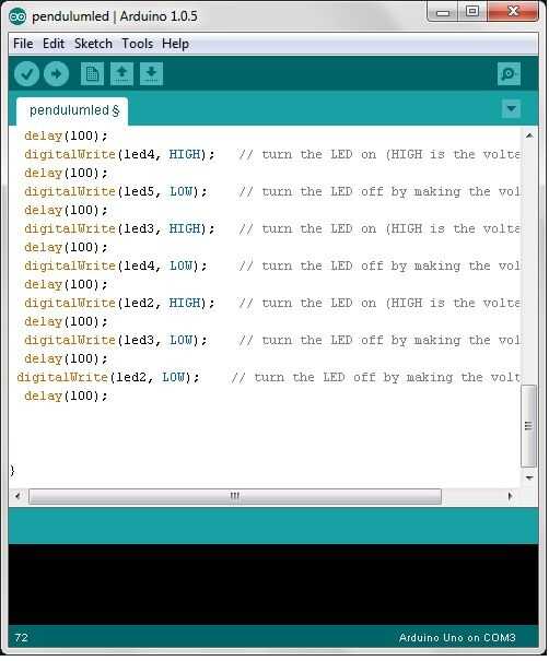 digitalWrite (led5, HIGH); Encienda el LED (alto es el nivel de voltaje)