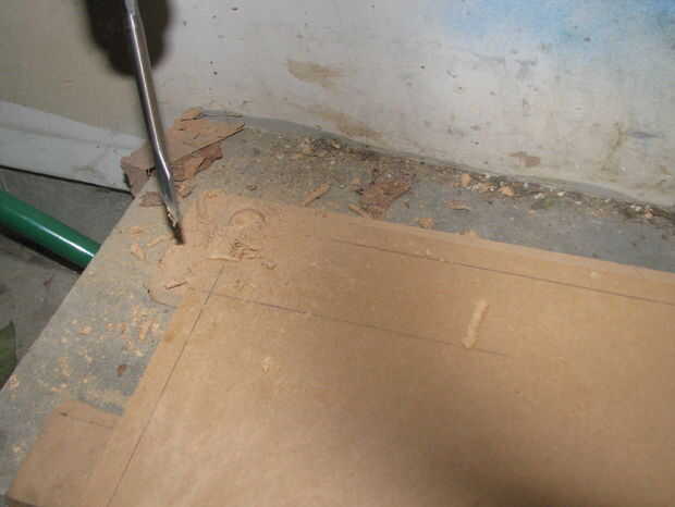 Antes de taladrar los orificios Coloque un trozo de madera debajo de la base, en caso de que accidentalmente taladra a través de la madera base que totalmente no desea golpear así opacar la broca de cemento. Ahora ten en cuenta que las piernas de la estructura son 1/2" por 1/2" por lo que no quiere un agujero tan grande que la pierna se nadar en él. Cometí ese error y causó algunos dolores de cabeza de Asamblea, así que vaya para un ajuste perfecto! No perforar la madera, 1-2 cm de profundidad será suficiente. Pero asegúrese de que es constantes para cada hoyo: medir después de perforar y hacer los agujeros a la misma profundidad como sea posible por lo que su estructura es aún!