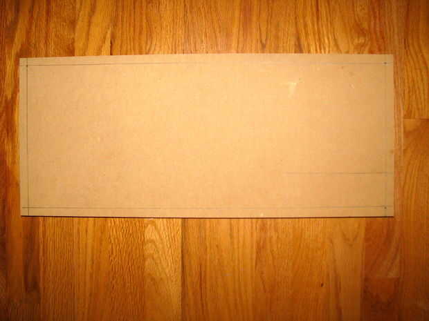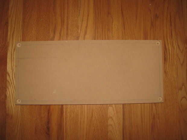 Una vez tienes el tamaño adecuado de base que necesita perforar los agujeros para las cuatro patas de la estructura. Para asegurarse de que las piernas tengan un espaciado uniforme, mida 1/4" desde el borde de la Junta en cada lado y colocar una marca con un lápiz. Usando un borde recto conecte todas sus marcas por lo que esencialmente tiene un borde de 1/4" alrededor de toda la base. Donde las líneas se cruzan en las esquinas (ver segunda foto abajo para clarificación) lápiz en un punto grande. Esto es donde usted taladrará un agujero para las piernas de la estructura.